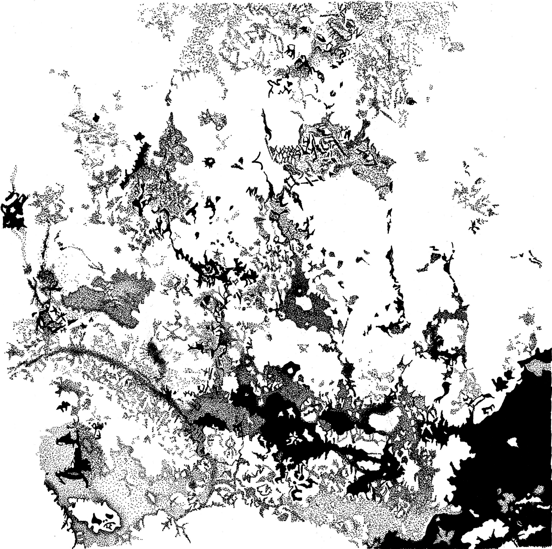Based on a 'source image', a photographed wall mold or moss in Portugal, 2016/2017.
